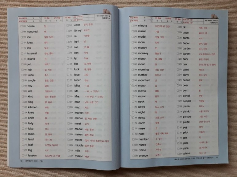 교과서, 참고서, 학원교재 등 너무 많은 책들에 둘러싸여 어느 것을 먼저 공부해야 할지 헤맬 때 해답을 주는 책인 것 같아요. 여러 책 전전하지 말고 이 책 한 권만 완전히 외우자!라는 일념으로 한 우물 파기에 더할 나위 없이 좋은 영단어 학습서입니다.